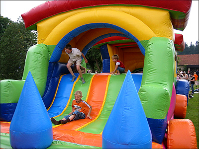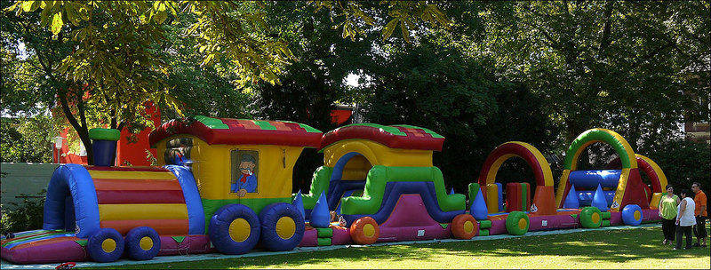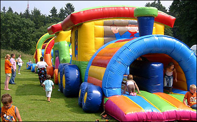Durch seine imposante Größe ist er auf keiner Veranstaltung zu übersehen. Zwei geschulte Mitarbeiter behalten Lukas` kleine Gäste stehts im Auge und sorgen für einen reibungslosen Bahnbetrieb.
